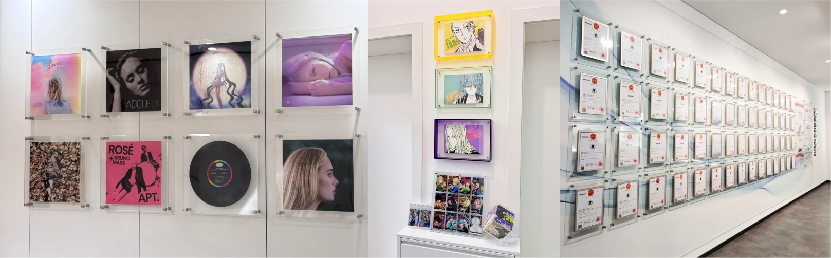 除了美观,亚克力照片墙的安装与维护也非常简便。材质轻便易于悬挂,擦拭清洁只需一抹,即可恢复晶莹透亮。它不仅是照片的载体,更是你生活态度的表达——不张扬,却足够有品。